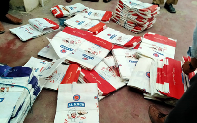 Law Enforcement Agencies conducted four (04) successful anti-counterfeiting Raid Actions on manufacturing hub, wholesalers & warehouses of imitated Al-Khub Atta (which is genuinely known as Al-Khubz Atta) on account of Trademark & Copyright violation at Karachi. More than 5000 Packaging Materials of imitated Al-Khub Atta & huge quantity of sub-standard flour were confiscated at the time of Raid. Concern authorities arrested the factory owner (accused) redhandedly and brought him to the Police Station for further interrogation. FIR514/2022 registered against those involved under PPC 420/485/486 and 66/67/34 of copyright act 1962.